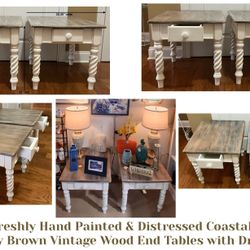 2 Freshly Hand Painted & Distressed Coastal White & Sandy Brown Vintage Wood End Tables w Drawer$175Wilmington, NC