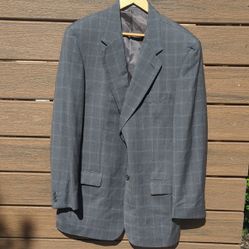 Loro Piana Italy Harry Rosen Gray Wool Sport Coat with Windowpane Fabric 44R $170Rocky Point, NC