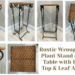 Rustic Wrought Iron Plant Stand or Side Table with Rattan Top & Leaf Accents$21Wilmington, NC