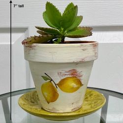Mother-of-Thousands Succulent in Hand Painted Terracotta Pot w Lemon Design & Yellow-Green Saucer$15Wilmington, NC