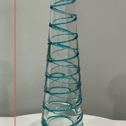 Thick Clear Glass with Raised Turquoise Swirl Pattern Vase or Candleholder$15Wilmington, NC