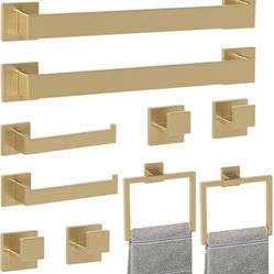 Bathroom Accessory Towel Bar Set: 10 Pieces Gold Bathroom Hardware Square SUS304 Stainless Steel - Wall Mounted Towel Rack&Toilet Paper Holder&Towel R$45Greensboro, NC