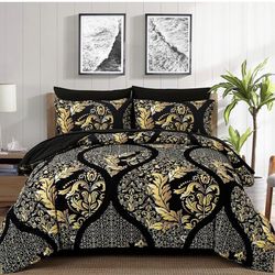 Anibedding Black Gold Comforter Set King Size, 7 Pieces Bohemian Damask Comforter Set Soft Lightweight Microfiber Bedding Set for All Season (104"x90"$50Greensboro, NC