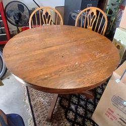 antique mission-style round oak pedestal dining table with 2 matching chairs$50High Point, NC