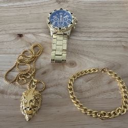 Luxury Gold-Tone Watch & Chain Set – Lion Pendant 🦁$15Winston-salem, NC