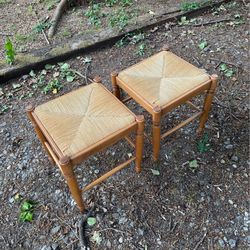 Beautiful set of 2 vintage-style stools with woven rush seats and solid wood frames.$80Greensboro, NC