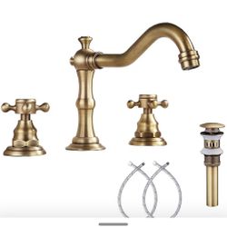 8 inch 2 Handles 3 Holes Widespread Bathroom Sink Faucet Antique Brass Bathroom Vanity Faucet Basin Mixer Tap Faucet Matching Metal Pop Up Drain with$45Greensboro, NC
