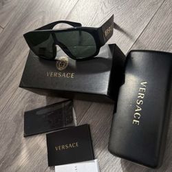 Versace VE4439 Black Shield Sunglasses in good pre-owned condition. $330High Point, NC
