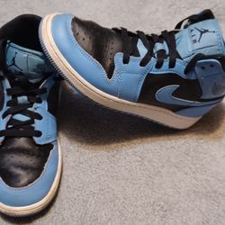 Kids Size 5Y Jordan Nike Logo Swoosh Mid University Blue Black $36Lincoln, NE