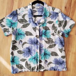 Hawaii Style Womens Shirt Floral Medium Blue Teal Flowers Short Sleeve$8Lincoln, NE