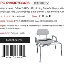 Carousel Sliding Shower Chair Transfer Bench with Swivel Seat, Premium Padded Bath, with Pivoting Arms, Adjustable Space Saving Design for Tubs, Showe$125Omaha, NE