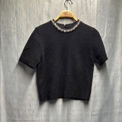 us Velvet Elegant Black Top with Embellished Neckline size extra small