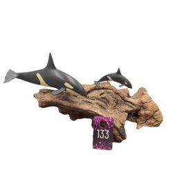 John Perry Studio Orca 'Killer' Whales on Burl Wood Nature Themed Art Sculpture$50Plattsmouth, NE
