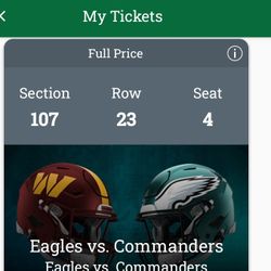 Eagles Vs Commanders Tickets 1/4/2026$250Fairless Hills, PA