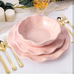 Cream Beaded 12-Piece Dinnerware with Plates and Bowls & Bowls Sets, Unbreakable Melamine Dinnerware Sets, Perfect for Indoor and Outdoor – Reliable f$35Cherry Hill, NJ