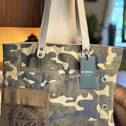 NWT Myra Bag Upcycled Canvas Camo Tote Star Emblem Military Inspired Shoulder Bag$40Eastamptn Township, NJ