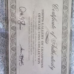 Just The Signed Certificate Of Authenticity 1988 Topps Gallery Of Champions $20Swedesboro, NJ