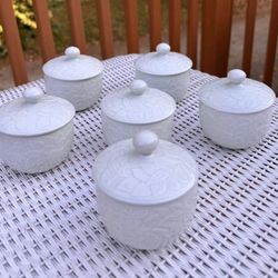 Asian Art Floral Embossed Saki Chinese Tea Cups No Handles Solid White Set Of 6$20Philadelphia, PA