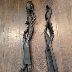 African Tribal Men Women Hand Carved Wood Figurines Statues Lot Of 2$10Philadelphia, PA