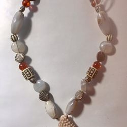 A Beautiful Necklace With Elegantly. Marfil Bone Carved Buddha And Agate and Ambar Resin And Stone.$55Edgemoor, DE