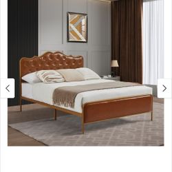 Dolonm Full Size Classic Buckle Backrest Platform Bed Frame, Metal Frames Bed Foundation with Wooden Slats Support, Coffee Leather Sponge Soft Bag Bed$90Camden, NJ