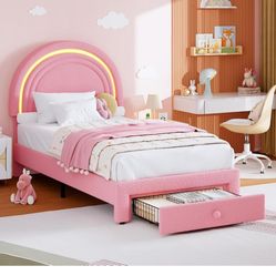 GarveeHome Twin Upholstered LED Bed Frame - with Storage Drawer and Rainbow Headboard, Berber Fleece Princess Platform Bed for Kids, Solid Wood Slats $115Camden, NJ