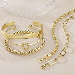 Gold Bracelets Set for Women Non Tarnish, Waterproof 14K Gold Plated Sterling Silver Chunky Cuff Bracelet Stackable Gold Bangles Bracelet for Women Tr$40Uppr Chichstr, PA
