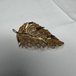 2.75” VINTAGE GOLD TONE FILIGREE MONET LEAF BROOCH PIN$10Jamison, PA