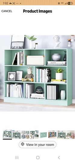 IOTXY Open Shelf Low Bookcase - Wooden 3-Tier Floor Standing Display Cabinet Organizer with Base, 10 Cubes Short Horizontal Bookshelf in Tiffany-Green$70Camden, NJ