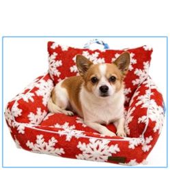 Festive Snowflake Dog Bed, Red and White, Soft Plush, Small Pet Sofa Style Couch Bed for Dogs and Cats$18Cherry Hill, NJ