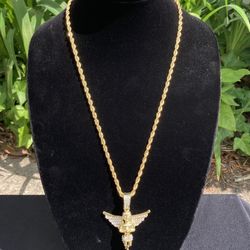 Gold Chain Rope Chain Necklace 24in 4mm And Icy Angel Pendant Set $45Haddon Heights, NJ