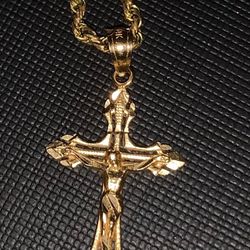 Gold Chain Rope Chain Necklace 20in 3mm And Gold Cross Crucifix Pendant Set $40Haddon Heights, NJ