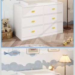 6 Drawer Baby Dresser, Nursery Dresser with Changing Topper, Long Cabinet for Infant Cloth Organize, Changing Station for Nursery and Kids Bedroom Sto$150Trenton, NJ