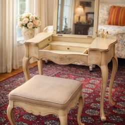 Vintage French Style Vanity Table with Mirror & Matching Stool$400Riverton, NJ