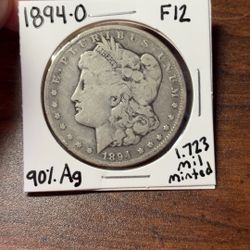 1894-O Morgan Silver Dollar F12$72Burlington, NJ