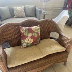 Bohemian wicker bench/small gray sofa, a white and gray chair, ottoman long table all price separately from $40-$100 each$80West Chester, PA
