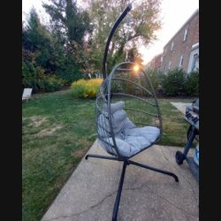 Chihee Egg Chair with Ultra Strong Stand and Cushion Foldable Wicker Rattan Hanging Chair Swing Chair Indoor Outdoor Patio Lounging Chair Hammock $145Pennsauken Township, NJ