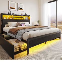 Rolanstar Full Bed Frame with Storage Headboard & 4 Drawers, Metal Platform Bed with Charging Station, LED Single Bed with Side Shelf, No Box Spring N$125Camden, NJ