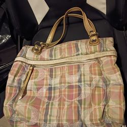 Coach Poppy Madras Tote Bag, Style Number 19611. It Features a Multicolored Plaid Pattern on Signature Sateen Fabric with Gold-Toned Leather Trim $50Philadelphia, PA