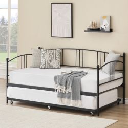 IDEALHOUSE Twin Daybed With Trundle, Metal Twin Size Daybed With Pullout Trundle 6 Casters, Steel Slat Support Sofa Bed For Living Room, Bedroom, Gues$55Woodlynne, NJ