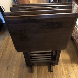 Four Wooden Snack Trays With Stand Beveled Top$30Garden City P, NY