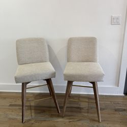 Pair of Beige Upholstered Mid-Century Modern Barstools with Wooden Legs$100Queens, NY