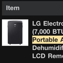 LG 12,000 BTU Portable AC w/dehumidifier Function $300Queens, NY