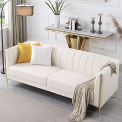 78'' Sofa with 2 Throw Pillows, Comfy Cloud Faux Leather 3 Seater with Gold Metal Legs$200Staten Island, NY
