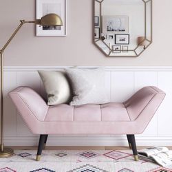 Pink Velvet Fabric Tufted Bench Ottoman - Excellent Condition $120New York, NY