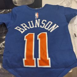New no brand NY Knicks Brunson blue basketball jersey with blue and orange accents. Features 'New York' and number 11. Stitched, raised lettering. S$55Queens, NY