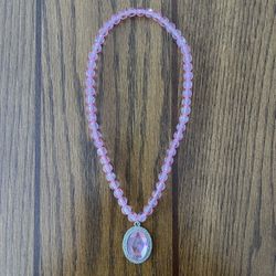 Kids Princess Necklace Pink Oval Pendant Beaded Stretch Cord Costume Jewelry$2Greystone Park, NJ