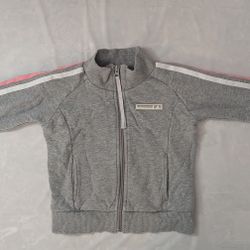 adidas, 3-Stripes track jacket in grey with pink and white stripes. Size 4t$10Bogota, NJ