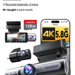 TERUNSOUl 4K Dash Cam Front and Rear, Full HD 3 Channel Dashcam, Free 128GB MicroSD Card, Built-in 5.8GHz WiFi Built-in GPS, Collision Sensor, Night V$45Philadelphia, PA