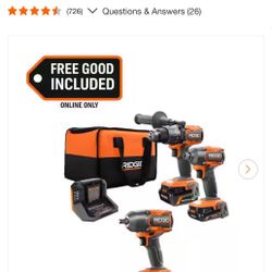 3 Tools Brand new RIDGID 18V Brushless 2-Tool Combo Kit w/2 Batteries, Charger, Bag + Bonus Wrench$250East Brunswick, NJ